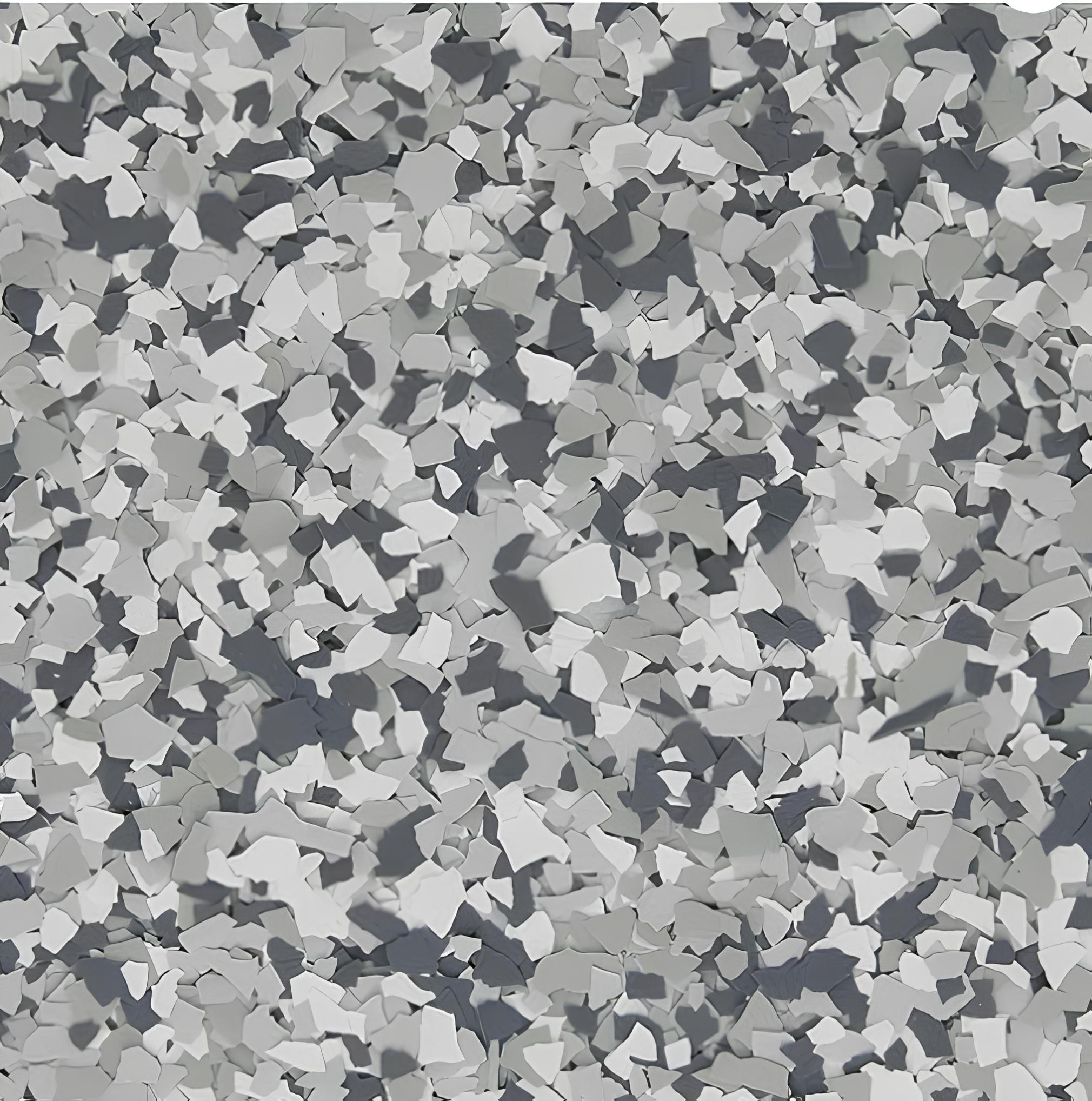Epoxy Flake - Dark Grey, white, and grey flakes.
